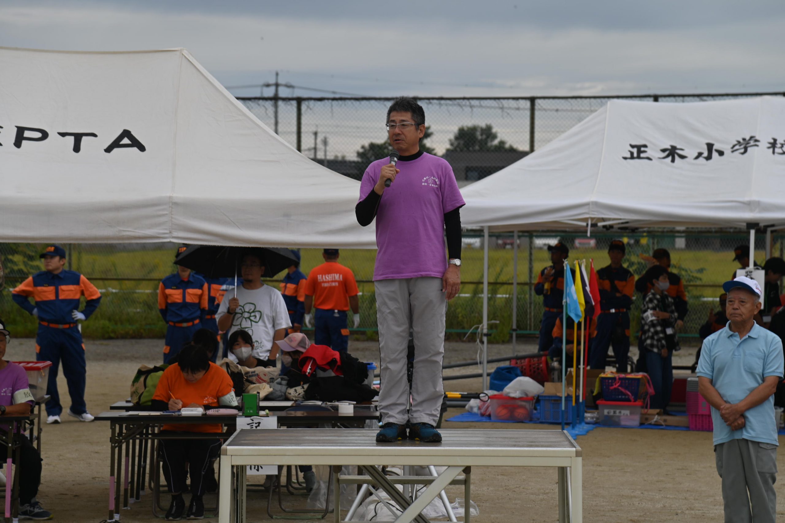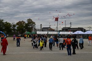 今年は当日の朝、小雨が残る中、正木小学校グランドにて開催されました。