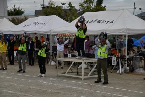 開会式では、佐溝運動会実行委員長の開会宣言の後、選手宣誓が行われ、全員に参加によるラジオ体操とヘルメット体操が