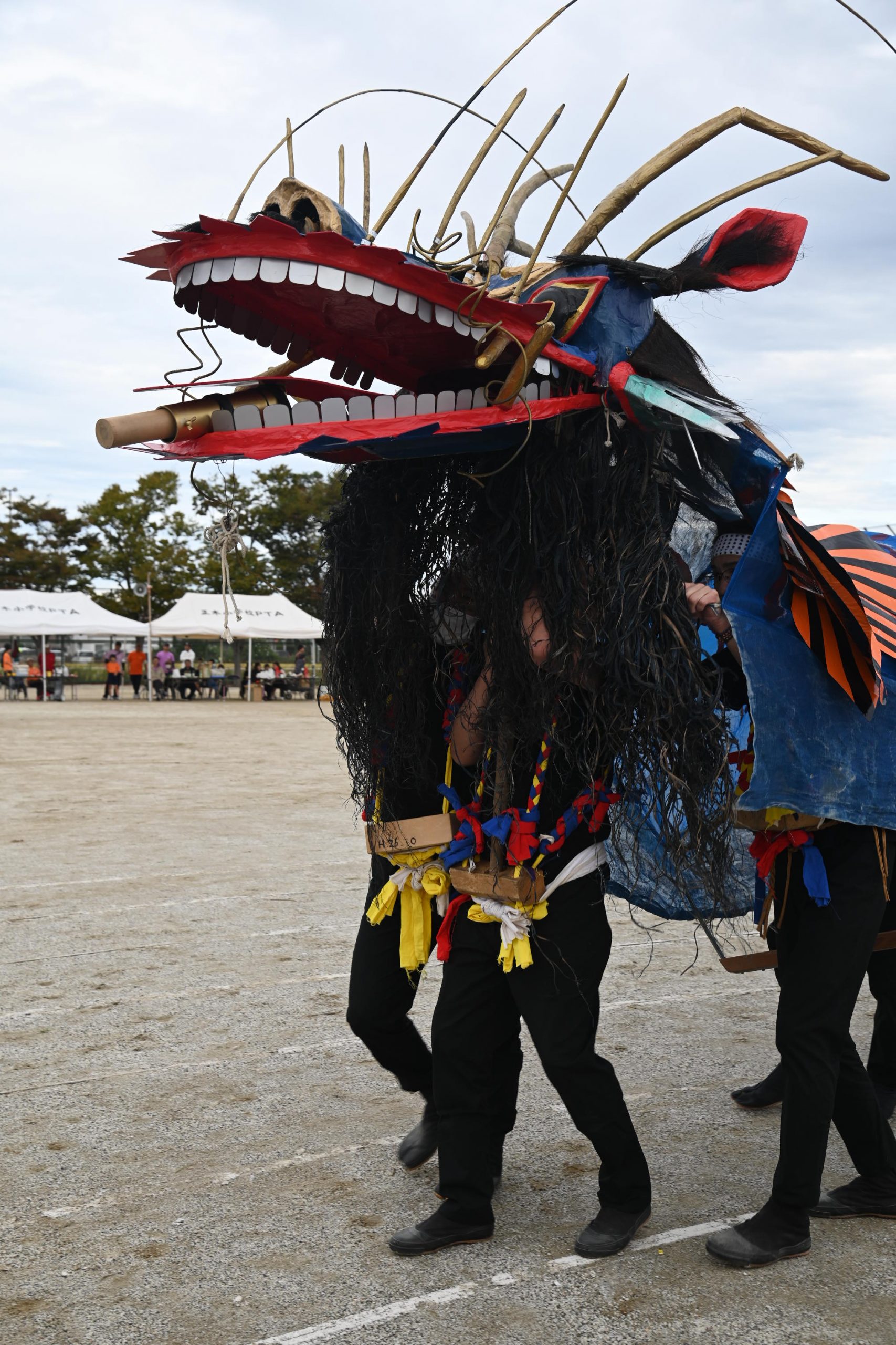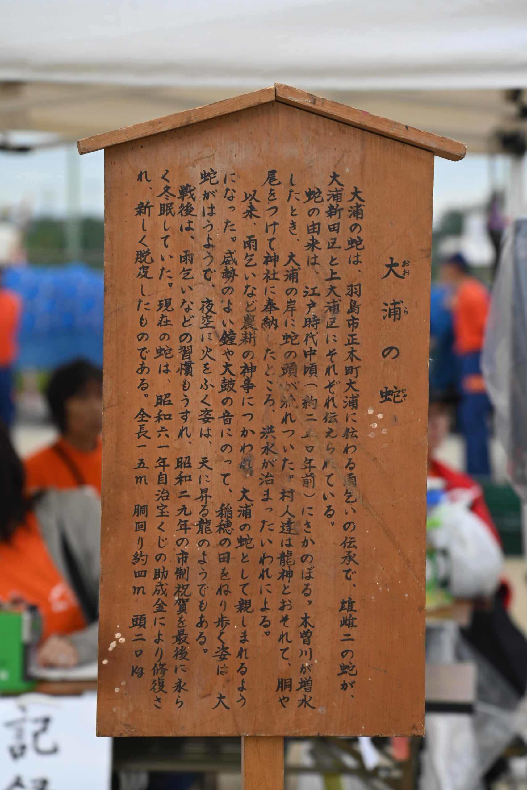 午前の部の競技が終了。お昼休みには、大浦の蛇保存会の皆さまによります[大浦の蛇]
